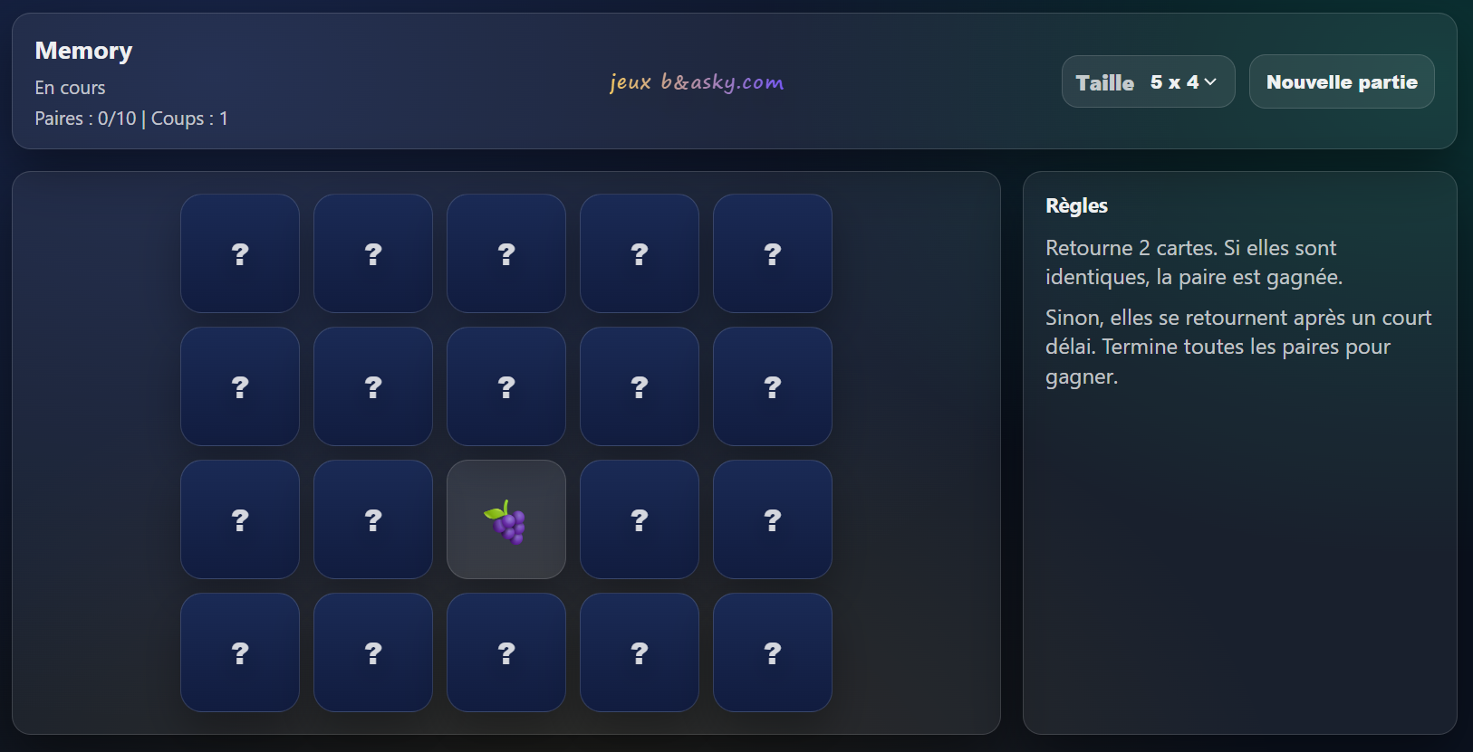 Voici le jeu memory en nouvelle version.
