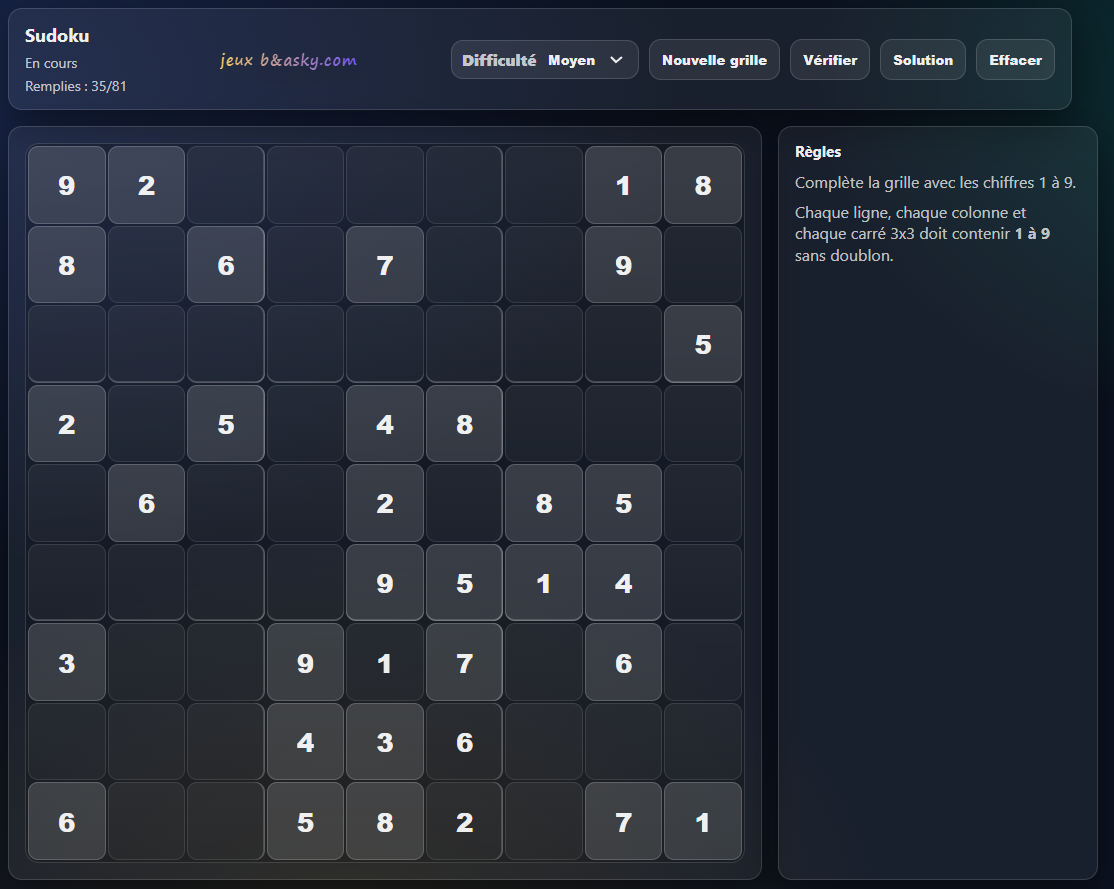 Voici le jeu sudoku.